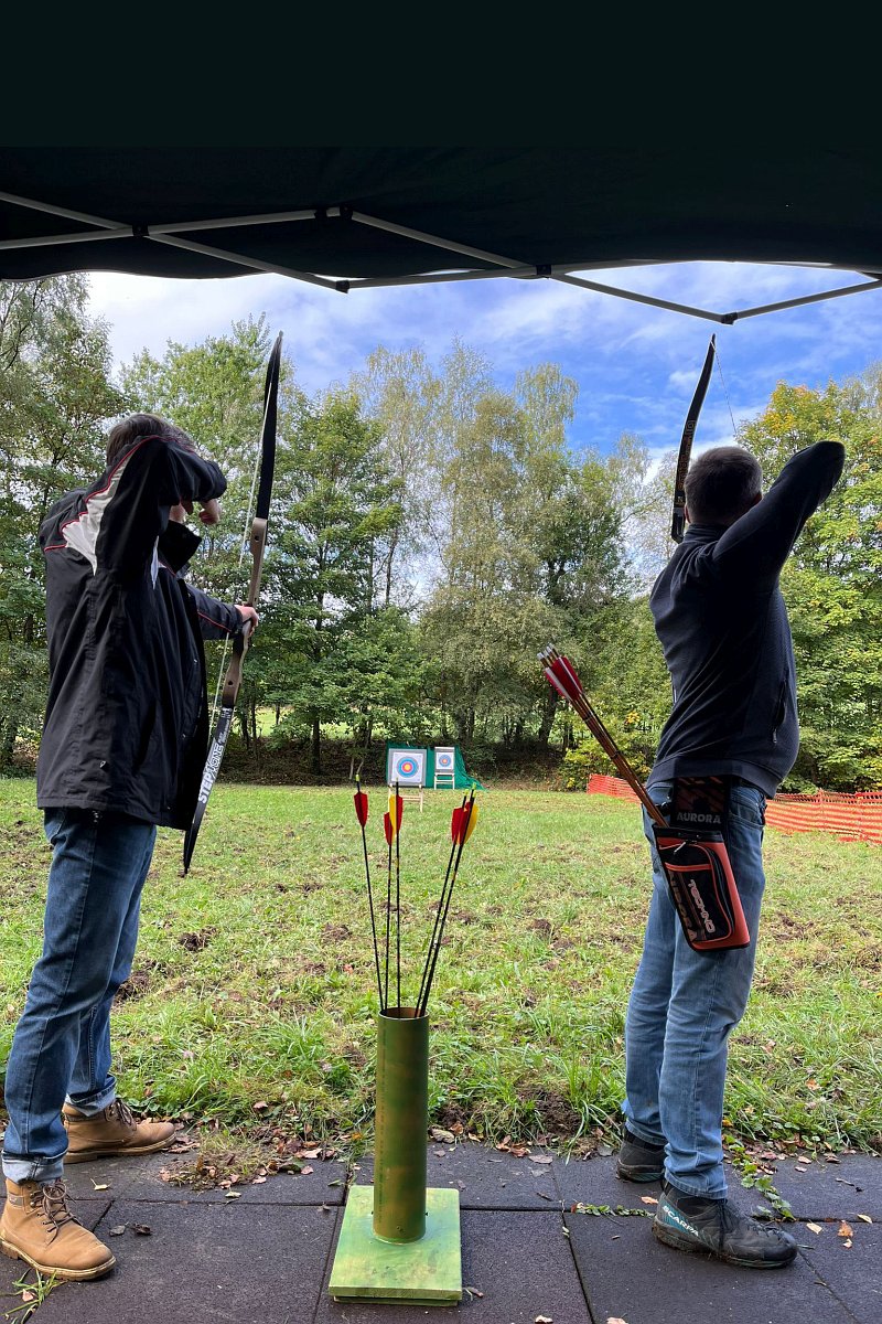 Zum Auftakt stand Bogenschießen auf 15 Meter auf dem Plan – mit dem kniffligen Ziel, mit 9 Pfeilen exakt 26 Ringe zu treffen. Nach spannendem Stechen setzte sich Sarah Otterbach durch . Beim 30-Meter-Bogenschießen ging es um den engsten Gruppenschuss. Drei Pfeile mussten auf dem Ziel so nahe wie möglich beieinander liegen. Nur drei Schützinnen und Schützen kamen überhaupt in die Wertung – und Eric Stenzel holte sich hier den Sieg.